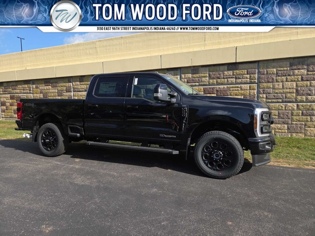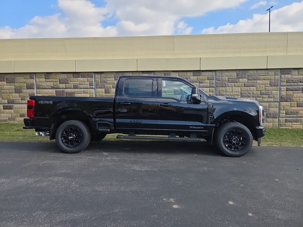 ENGINE: 6.7L 4V OHV POWER STROKE V8 TURBO DIESEL B20 manual push-button engine-exhaust braking and Operator Commanded Regeneration (OCR), 250 Amp Alternator, 34 Gallon Fuel Tank, 3.31 Axle Ratio, Dual AGM 68 AH Battery, BLACK APPEARANCE PACKAGE front and rear black Ford ovals, box side decal (4x4, FX4 or Tremor) and ebony black fender vent surround dark fender badge, Rear Wheel Well Liners (Pre-Installed), Black Painted Front Grille Surround, Ebony Black Painted Mirror Caps, Tough Bed Spray-In Bedliner, tailgate-guard, black box bed tie-down hooks and black bed attachment bolts, Body Color Front & Rear Bumpers, Wheels: 20 Ebony Black High Gloss, Black premium painted aluminum, gloss black hub cover/center ornament, Tires: LT275/65Rx20E BSW Automatic Transmission, Spare may not be the same as road tire, 6 Ebony Black Angular Running Boards, LARIAT ULTIMATE PACKAGE Tailgate Step & Handle, Head-Up Display, 4-Way Adjustable Headrests, Power-Deployable Running Boards, Radio: B&O Unleashed Sound System by Bang & Olufsen, HD Radio w/14 speakers including subwoofer, LARIAT PREMIUM PACKAGE Pro Trailer Hitch Assist, Ford Co-Pilot 360 Assist 2.0, 360-degree camera, rear view camera and reverse brake assist, Pre-Collision Assist, Automatic Emergency Braking (AEB), pedestrian detection, forward collision warning, dynamic brake support and intersection assist, Post-Collision Braking, Lane-Keeping System, lane-keeping alert, lane-keeping aid and driver alert, Front & Rear Parking Sensors, Automatic High Beam, Adaptive Cruise Control w/Stop-and-Go, lane centering and predictive speed assist, Power-Sliding Rear-Window w/Defrost, Pro Trailer Backup Assist, trailer reverse guidance, Lane Departure Warning, TWIN PANEL POWER MOONROOF map lights and moonroof switches, SECURICODE KEYLESS ENTRY KEYPAD (DRIVERS SIDE) Integrated into the B-pillar, ELECTRONIC-LOCKING W/3.55 AXLE RATIO, TRANSMISSION: TORQSHIFT 10-SPEED AUTOMATIC SelectShift and selectable drive modes: normal, eco, slippery roads, tow/haul and off-road.