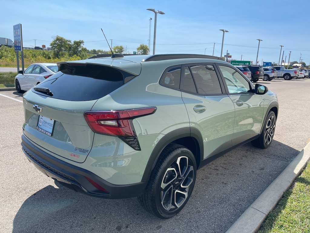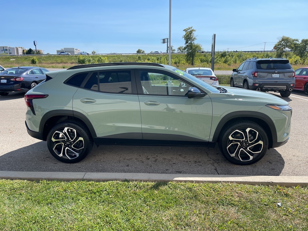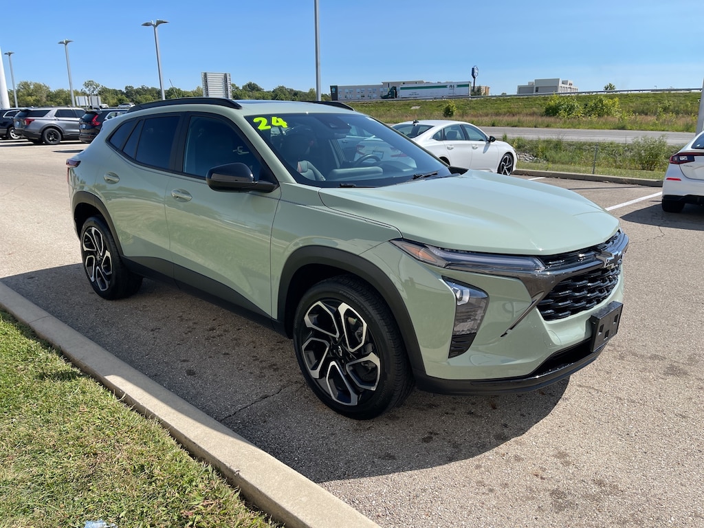 2024 Cacti Green Chevrolet Trax 2RS CRUISE CONTROL, 2-Way Adjustable Front Head Restraints, 3.50 Final Drive Axle Ratio, 4-Way Manual Front Passenger Seat Adjuster, 4-Wheel Disc Brakes, 6 Speakers, 6-Speaker Audio System Feature, 6-Way Manual Driver Seat Adjuster, ABS brakes, Adaptive Cruise Control, Air Conditioning, Alloy wheels, AM/FM radio: SiriusXM, Auto High-beam Headlights, Automatic temperature control, Brake assist, Bumpers: body-color, Compass, Delay-off headlights, Driver Confidence Package, Driver door bin, Driver vanity mirror, Dual front impact airbags, Dual front side impact airbags, Electronic Stability Control, Emergency communication system: OnStar and Chevrolet connected services capable, Evotex Seat Trim, Exterior Parking Camera Rear, Front anti-roll bar, Front Bucket Seats, Front Center Armrest, Front reading lights, Front wheel independent suspension, Fully automatic headlights, Heated door mirrors, Heated Driver & Front Passenger Seats, Heated front seats, Heated steering wheel, Illuminated entry, Lane Change Alert w/Side Blind Zone Alert, Low tire pressure warning, Occupant sensing airbag, Outside temperature display, Overhead airbag, Overhead console, Panic alarm, Passenger door bin, Passenger vanity mirror, Power door mirrors, Power Sliding Glass Sunroof w/Manual Shade, Power steering, Power windows, Preferred Equipment Group 2RS, Premium audio system: Chevrolet Infotainment 3, Radio data system, Radio: Audio System w/AM/FM, Rear Cross-Traffic Alert, Rear Park Assist, Rear Park Assist (DISC), Rear window defroster, Rear window wiper, Remote keyless entry, Security system, Speed control, Split folding rear seat, Spoiler, Sport steering wheel, Steering wheel mounted audio controls, Sunroof Package, Tachometer, Telescoping steering wheel, Tilt steering wheel, Traction control, Trip computer, Variably intermittent wipers, Wheels: 19" Black-Painted Machined Aluminum, Wireless Charging. Clean CARFAX. CARFAX One-Owner. 28/32 City/Highway MPG